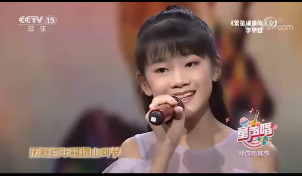 我校初一學生、中學舞蹈團成員李莘越,獲邀在中央電視台CCTV15「童聲唱」欄目《暢遊元宵節》中,演唱歌曲《繁星璀璨的天空》,表現出色,獲高度評價。