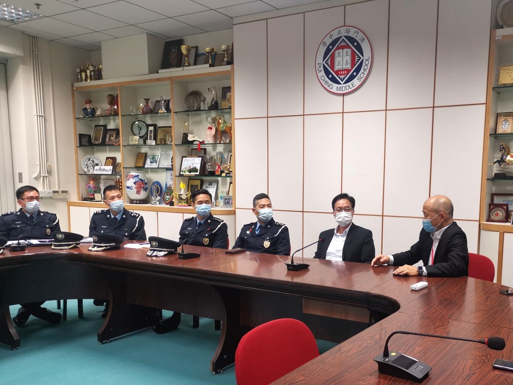 今早,澳門治安警察局策劃行動廳李志輝廳長等一衆長官到訪本校,就本澳民防演習工作、青少年防罪教育與本校周邊治安與交通情況進行交流。高錦輝校長感謝治安警察局長期對本校的關顧,並強調警校間應多合作,發揮好警校聯絡機制,共同為青少年締造健康的成長環境。
