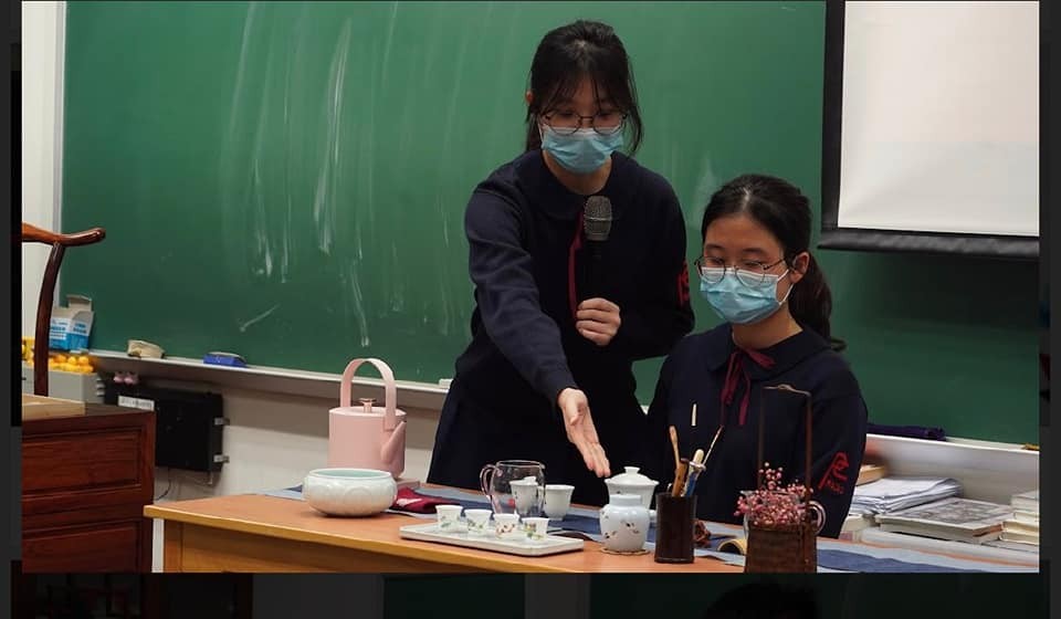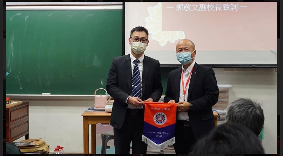 郭副校長致詞時勉勵同學秉承傳統,並在開拓創新的道路上不斷探索,今後多研究本澳歷史地理,在大灣區,橫琴深合區進行考察研究,為特區政府出謀獻策。繼而由史地學會會長周家弘作會務報告,匯報去年及來年的工作計劃,他指出學會將致力貫徹「了解澳門,認識祖國,放眼世界」的宗旨,持續組織同學進行史地研習活動。適逢其會,兩校同學進行學術交流活動,陳君維同學負責《探祕澳門》短講,茶文化小組同學展示中華茶藝,還有菜農學校同學為大家介紹「慶生文物系列」。在場嘉賓對同學予以鼓勵,會員向來賓贈送刊物,場面熱鬧。