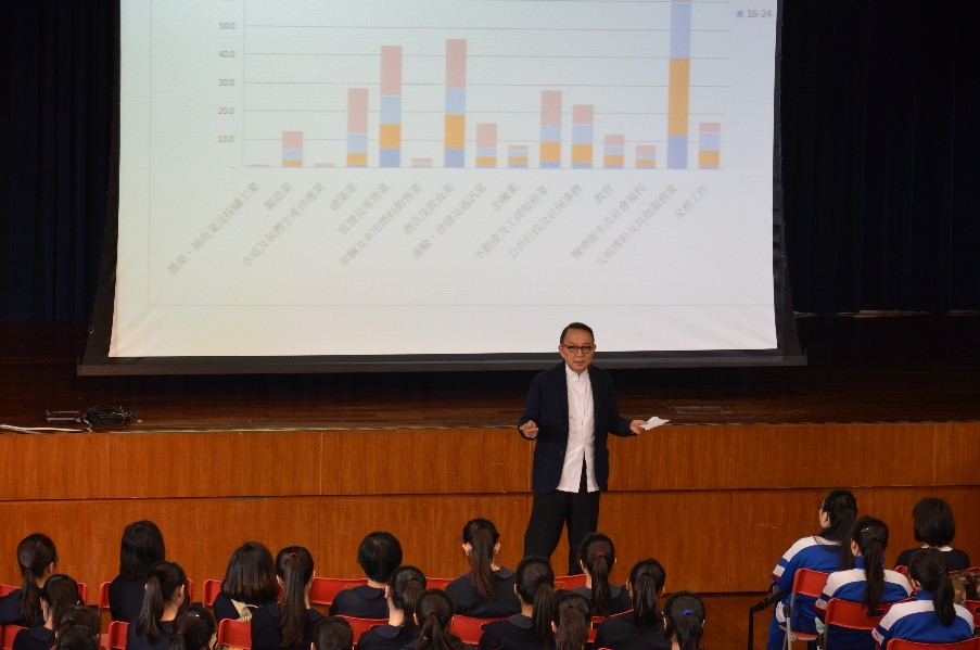 3月24日,澳門生產力暨科技轉移中心主席、澳門培正中學校董楊俊文博士蒞校,為高二、高三級同學舉行了一場有關升學與就業形勢講座,楊校董透過豐富的數據,積極的互動答問,引導學生思考如何提升競爭力去面對未來的挑戰。他認為情商(EQ)、正確的自我定位和創新能力是今日自我增值的重點。楊校董的演講風趣幽默,富啟發性,同學們深感獲益良多。