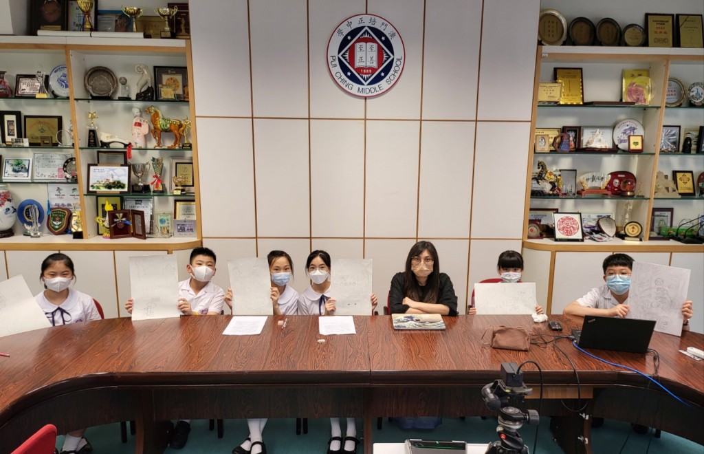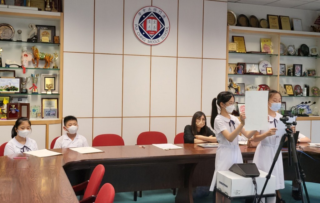 交流活動中,北海市第二實驗學校宣龍安老師宣講活動意義,介紹了廣西綠色環保開展情況;本校視覺藝術科科主任黃慧儀簡述了澳門綠色環保推行狀況,分享本校做為全國首間零碳學校試點單位的實踐。兩校學生交流作品創作理念,暢談對環保、零碳公民的思考與展望,並即時修改作品,互相交流學習。