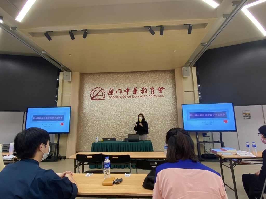 本校中文科主任麥芷琪老師應邀出席由澳門教師公約關注小組主辦的「新入職教師師德建設分享座談會」,並擔任分享嘉賓。麥老師以專業成長、操守、學生成長、使命感等方面向新入職教師分享在教育工作上的點滴,在小組討論上與老師們交流,氣氛熱烈。