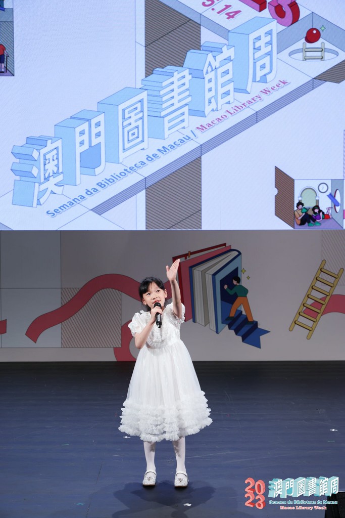 為響應4月23日「世界閱讀日」,推動澳門閱讀之城建設及社會閱讀風氣,我校獲教育及青年發展局邀請,並派出小學部11位學生於澳門文化中心參與由文化局、教育及青年發展局、澳門大學圖書館暨資訊管理協會合辦的「閱讀之城系列活動—2023年澳門圖書館周文藝匯演」。