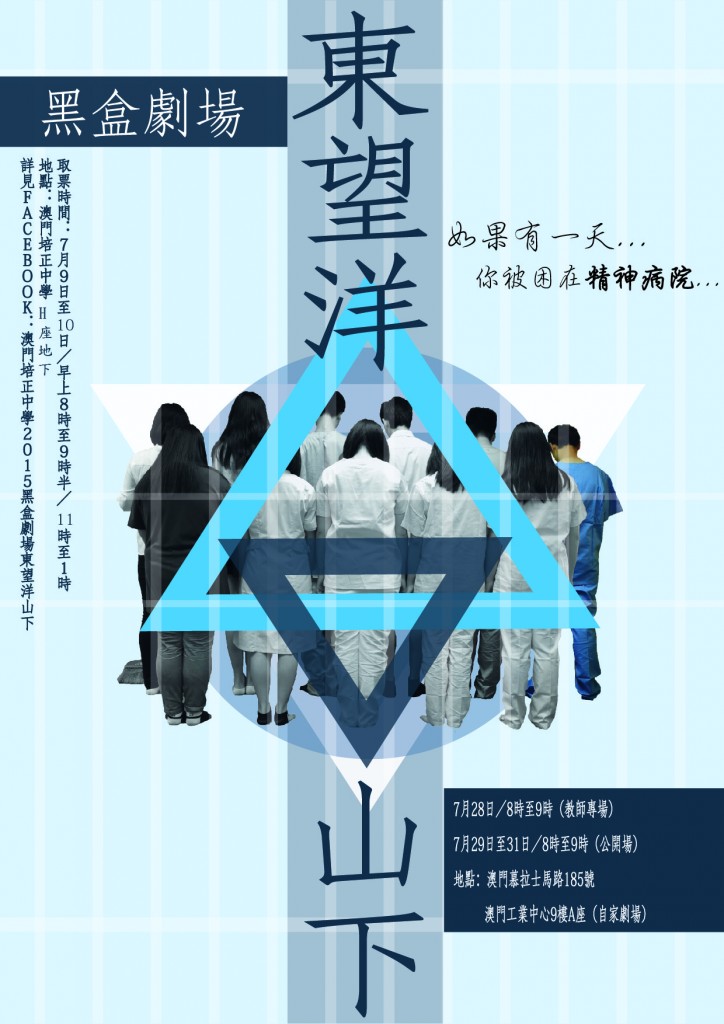 戲劇社「2015黑盒劇場----東望洋山下」將於7月29日至31日,每晚8:00假慕拉士大馬路185號澳門工業中心9樓A座自家劇場公演。取票時間為7月9日及10日,上午8:00至9:30及11:00至下午1:00,請各位萬勿錯過。