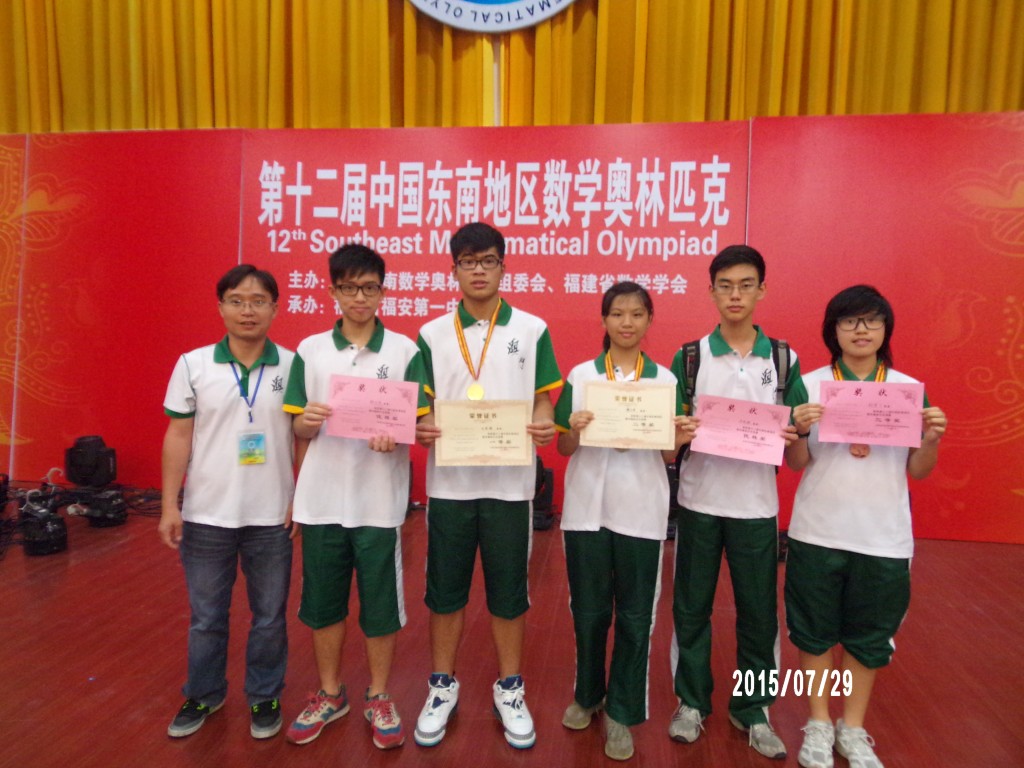 本校高中同學任凱翔、鄧子俊、賴慧寧、鄧楚灝、魏可盈獲選為澳門區代表,在梅致常老師帶領下於7月25日至30日到福建參加第12屆中國東南地區數學奧林匹克。鄧楚灝同學獲一等獎(金牌),成為澳門首位在此項數學競賽中奪得金牌的同學。魏可盈同學獲二等獎(銀牌),賴慧寧同學獲三等獎(銅牌)。囊括三甲,成績優異。