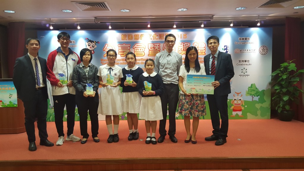 我校中、小學同時獲得「校園節能文化活動2015」節能校園綜合獎之金獎,小學同時獲得最高榮譽節能模範校園大奬;沈世傑老師與劉思進老師獲得中學組能源教學活動奬;陳少婷老師與袁國展老師獲得小學組能源教學活動奬;沈世傑老師、袁國展老師及19名學生開展之太陽能劇團獲得科普活動奬 。