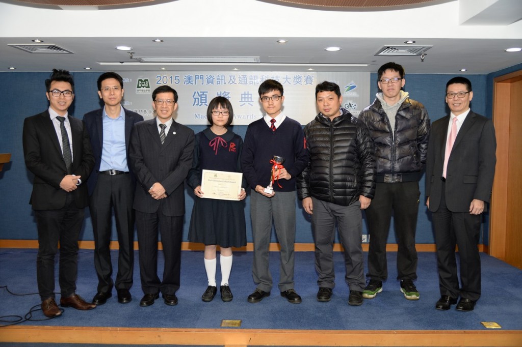 由電腦學會主辦,生產力暨科技轉移中心協辦,電信管理局、教青局及澳門基金會贊助的“二○一五年澳門資訊及通訊科技大奬賽”,本校中學同學梁竣皓、梁顥馨以”AR STORE”獲得中學生優異獎。
