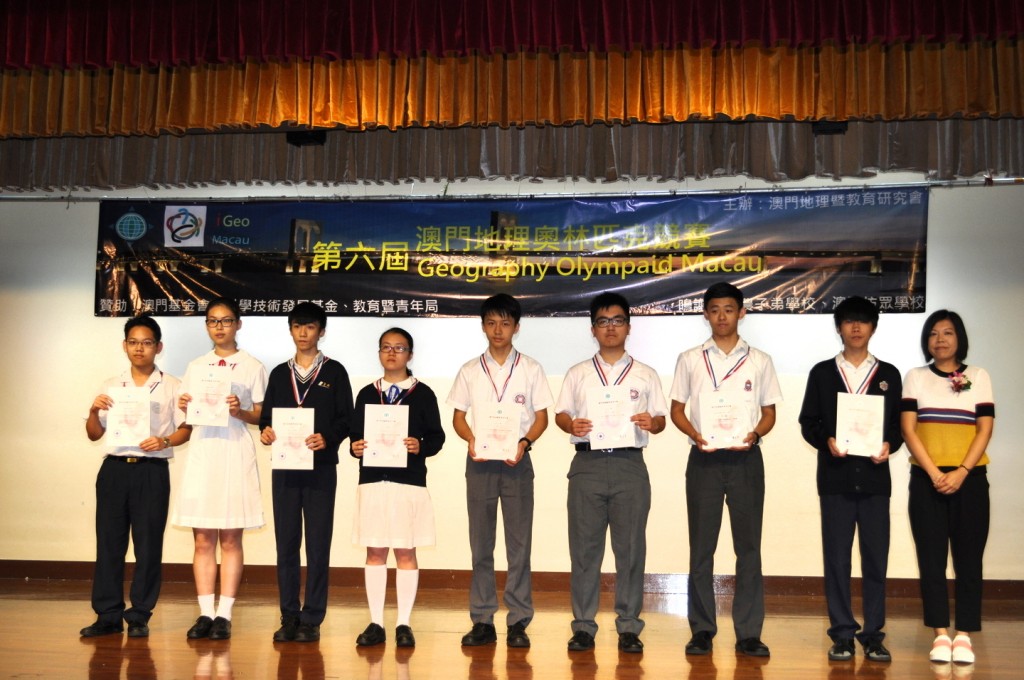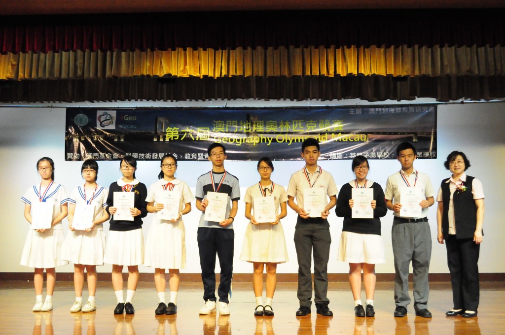 2016410日本校周慧心老師帶領地理奧林匹克競賽小組”8位同學參加由澳門地理暨教育研究會所舉辦的2016年第六屆澳門地理奧林匹克競賽,521日假澳門坊眾學校參加頒獎典禮,共獲得個人四個銀奬和四個銅獎的佳績。獲得銀獎的同學分別是高二級梁頌宏、潘凌子、高一級何潤景、李奕儒,獲得銅獎分別是高二級余澄觀、曾浩倫、鄭舜彥、高一級呂乾亨。此外,本校周慧心老師和譚達賢老師亦獲該會頒發的優良教師證書,以示鼓勵。恭喜各位得獎老師和同學。