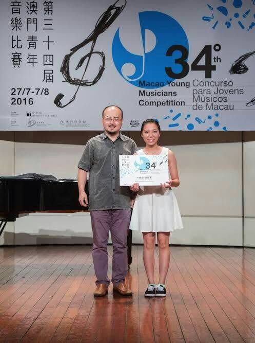 而陳穎姿同學再與所有中級組樂器第一名比賽,表現出色,獲得第34屆澳門青年音樂比賽特別大奬賽中級組全場總冠軍 ,可喜可賀!