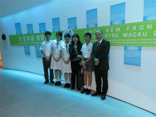 「大愛無疆.情繫四川 澳門特別行政區支持四川地震災後重建紀念圖片展覽」於9月30日至10月6日在澳門科學館舉行,本校小六信甯願同學之繪畫作品獲選展出。甯願同學獲邀出席於9月30日舉行之活動儀式,向嘉賓闡述其創作意念。郭副校、王桂芬老師及三位中學同學亦出席了上述活動。