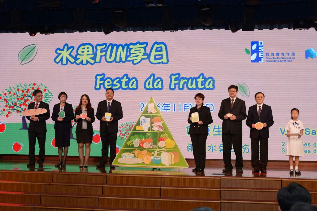 教青局、澳門基金會今早在本校禮堂舉行水果FUN享日活動啟動禮,本校小學舞蹈隊演出助興。全澳師生均獲當局送贈蘋果一盒,鼓勵師生注重均衡飲食,養成每日進食兩份水果和三份蔬菜的習慣。