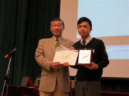 高二馮文康同學於三月十六日在指導老師鄧妙姿陪同下,前往香港大學出席Junior Writers Awards 2014 頒獎禮。該比賽分為初級、中級和高級組別,近1100名港澳學生參加;評判團包括作家、教育界、法律界等專業人士,他們從中挑選100篇優秀作品,馮同學同時獲得 Greatest Potential Award 及 Certificate of Excellence,為校增光。