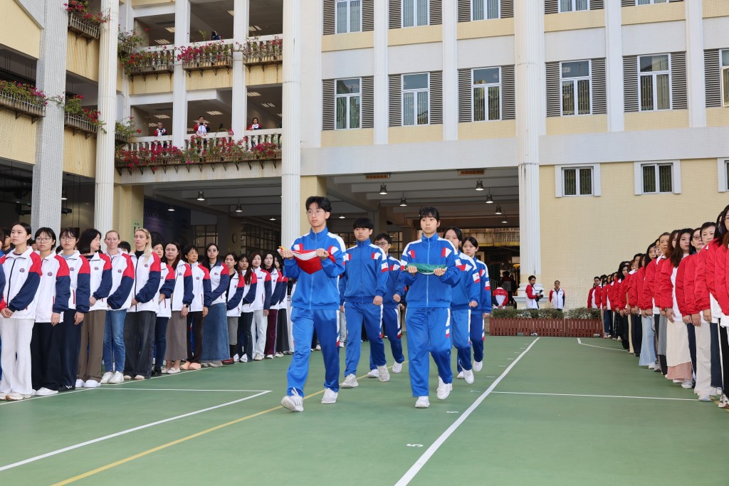 其後,高錦輝校長發表講話。他表示,站在國旗與區旗之下,全體師生充滿自豪與感恩。過去一年,培正中學在特區政府與社會各界支持下穩步成長,不斷優化教學環境、推動課程創新,而特區的各項教育政策也為師生搭建了堅實的成長平台。他強調,澳門雖小但志向深遠,本校學生在國際評估中屢創佳績,眾多優秀畢業生成功走進海內外一流大學,這生動印證了澳門教育蘊含的蓬勃生機。