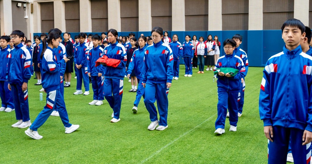路環校部今早同舉行升旗儀式,師生共同見證國旗與區旗冉冉升起。