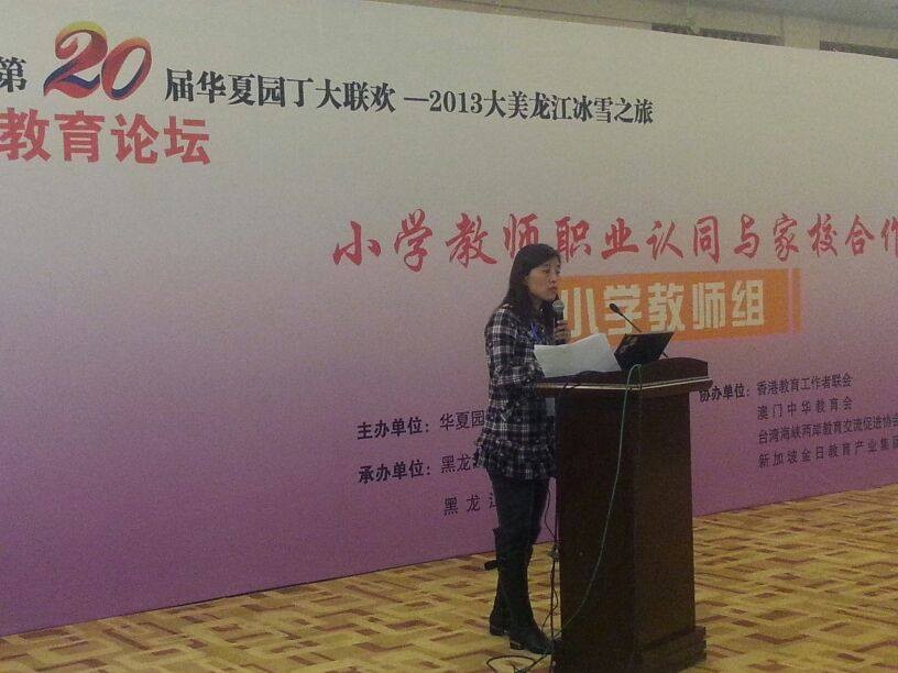 柏青老師出席在哈爾濱舉行的華夏園丁教育論壇, 分享家校合作心得。